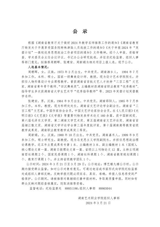 关于周朝晖、张建安、周新娟申报相关人才工作的公示