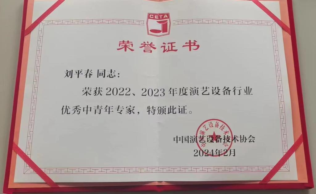 刘平春-2022-2023年度中国演艺设备行业杰出中青年专家