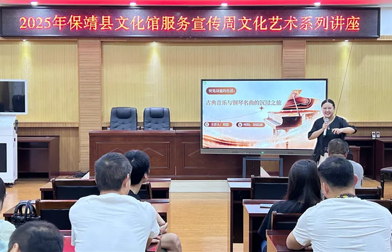 作为学校长期推进的基层服务项目,湖艺教师团队以专业力量精准对接地方需求。声乐教师彭莎携《好声音的科学训练法》走进文化馆,通过互动教学让零基础学员快速掌握发声技巧;刘岱老师以《古典音乐与生活美学的交融》为引,带领听众沉浸式感受西方古典钢琴音乐的艺术魅力。